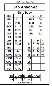 Get all 9 teams from the National Association in 1871, the start of professional baseball. You will also get the 1871 roster sheets and the ballpark chart. You will need the DICE Baseball Game Parts to use this set. Free shipping anywhere in the USA. Contact us for international shipping.