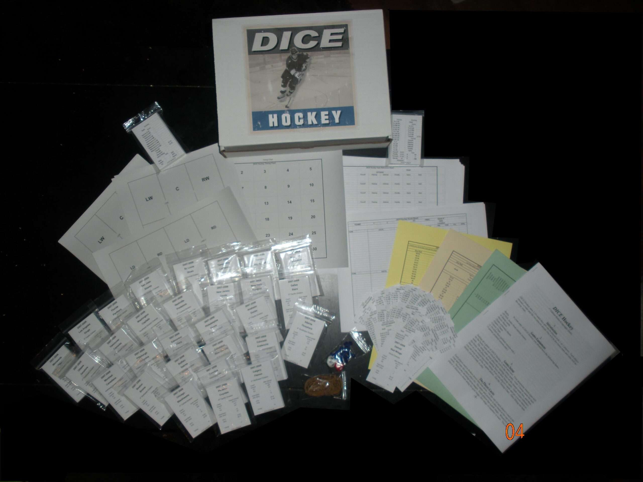 Includes everything you need to play the DICE Hockey Game. Does not include any card sets. Free shipping anywhere in the USA. Contact me for international rates.
